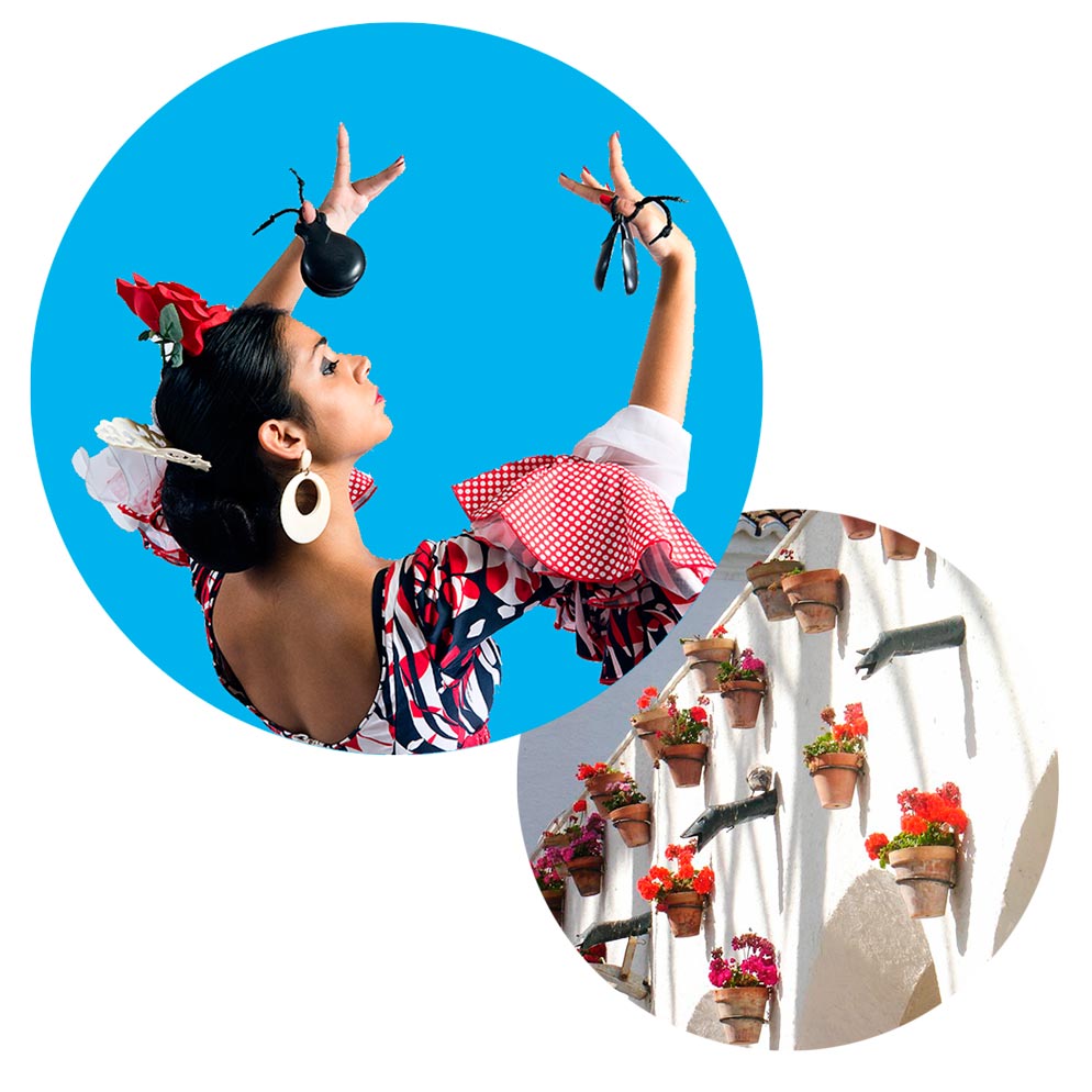 - Päiväretket kaupunkeihin kuten Granada, Sevilla, Málaga ja Córdoba, joissa voitte tutustua jokaisen paikan ainutlaatuiseen historiaan, arkkitehtuuriin ja kulttuuriin.